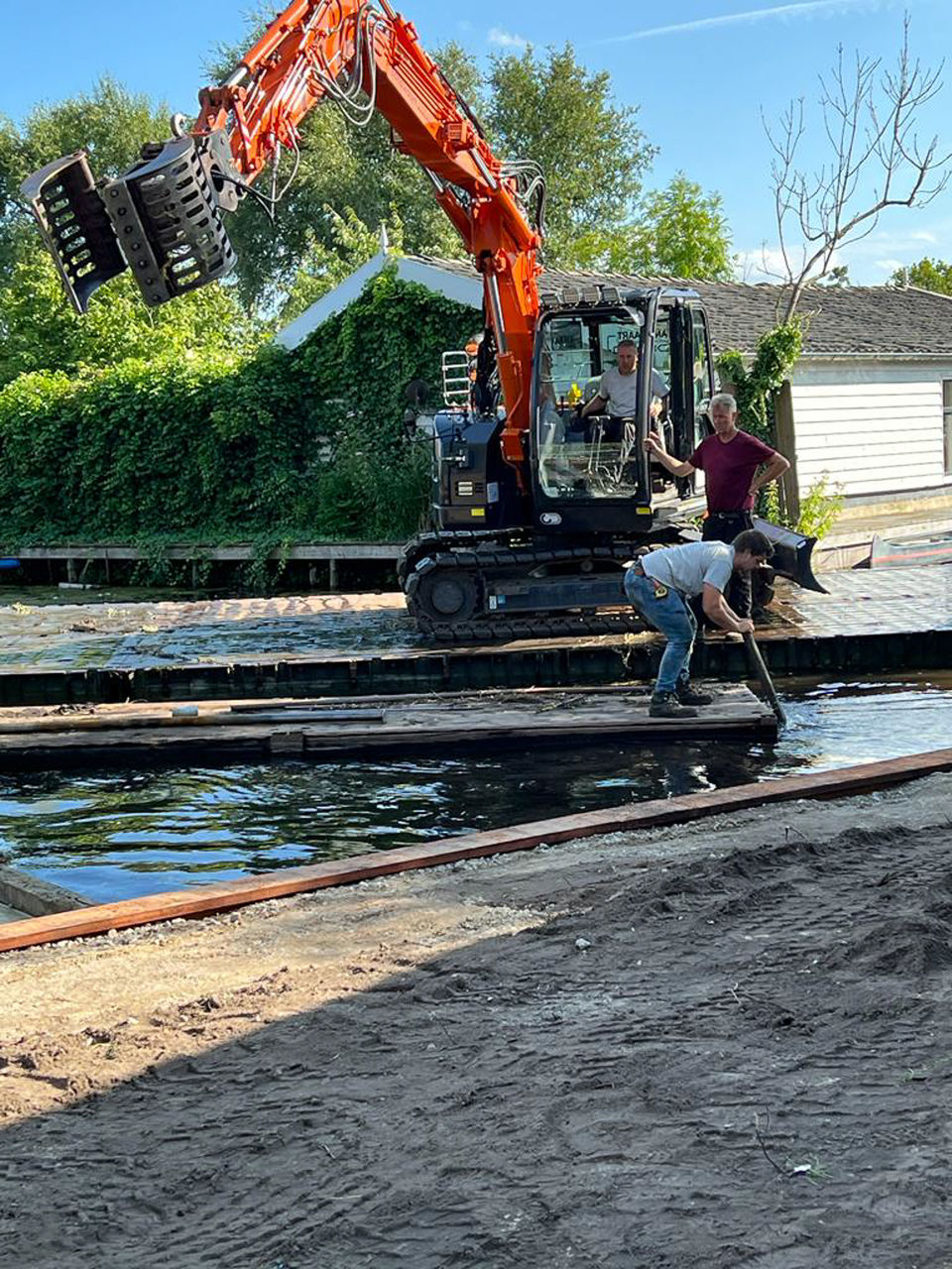 Het plaatsen van beschoeiing is een cruciale stap en vereist vakmanschap. Wij zetten ons in voor hoogwaardige plaatsing, waarbij de verankering van de beschoeiing van groot belang is. Door de beschoeiing diep in de oever te verankeren, onder de juiste hoek en met voldoende ankerpunten, wordt verzakking voorkomen. Dit verzekert u van een duurzame beschoeiing die vele jaren meegaat zonder verzakkingen of problemen. Bovendien worden er platons in het water geplaatst om schade aan opritten en tuinen te voorkomen, en wordt alles netjes achtergelaten voor een tevreden klant.